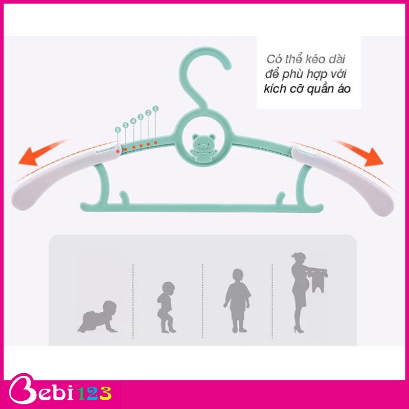 Set 5 móc treo phơi đồ có thể nới rộng cho phù hợp kích cỡ áo quần của bé