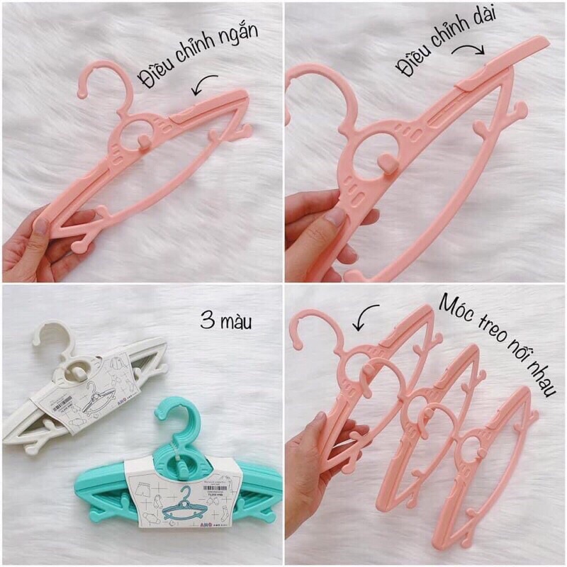 Set 5 móc treo quần áo trẻ em, móc đồ em bé điều chỉnh được độ dài ngắn Amo Baby