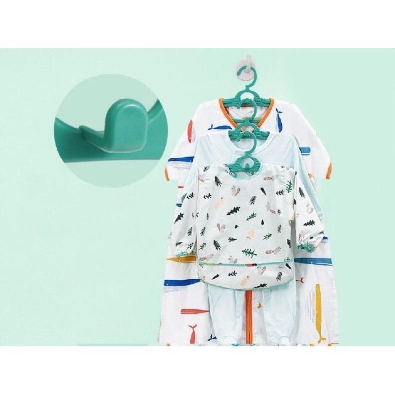 ➡️ Một điểm rất thông minh đó là thiết kế có thanh nhỏ ở giữa, giúp có thể móc nối dài nhiều móc vào với nhau => quần áo của bé có thể được sắp xếp vô cùng gọn gàng, rất tiết kiệm diện tích tủ đồ, lại giúp mẹ dễ dàng tìm đồ cho bé.