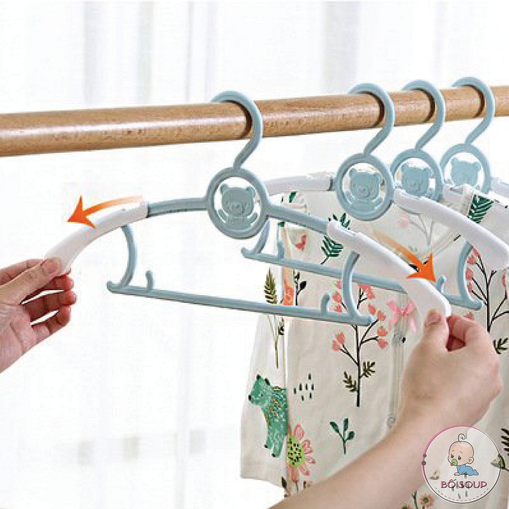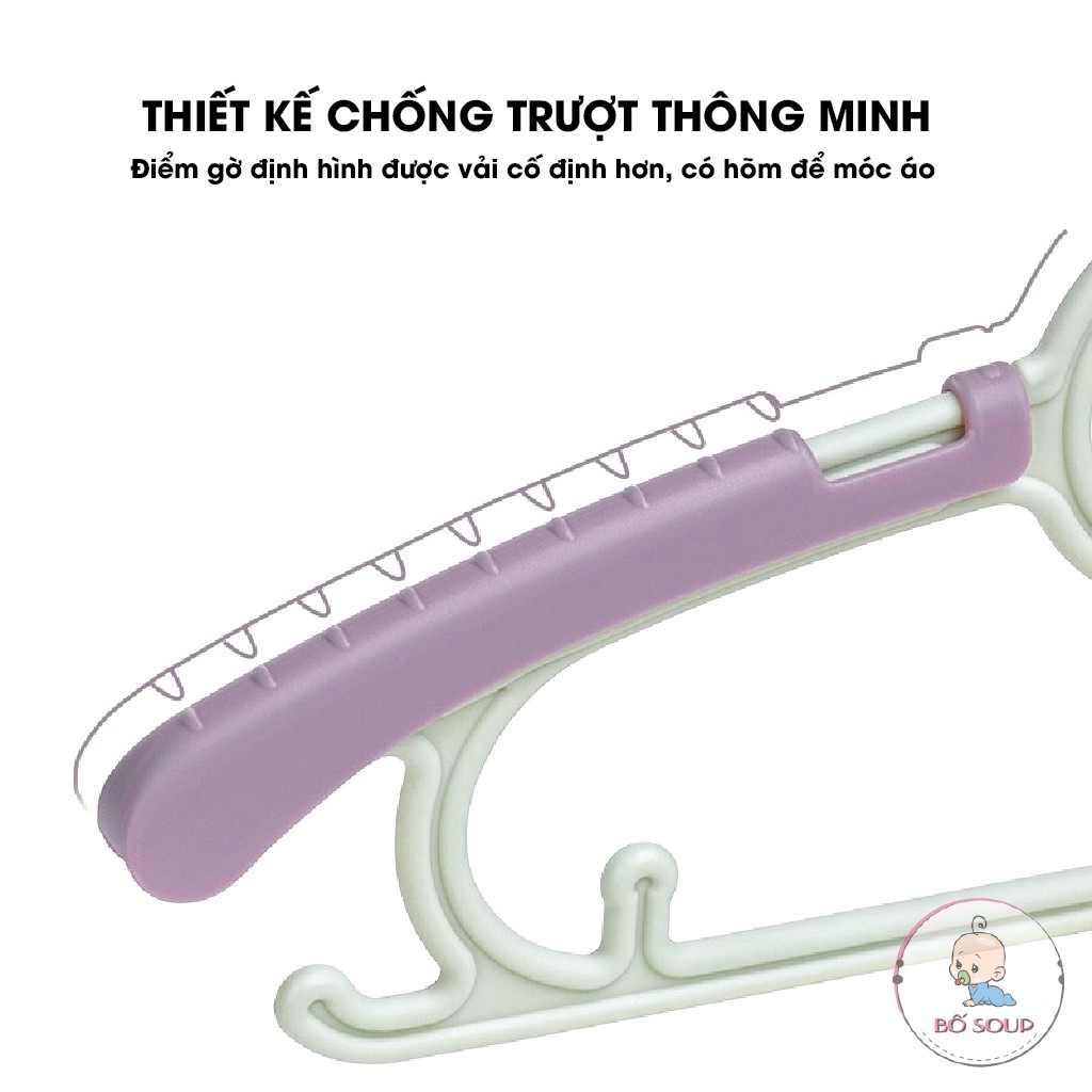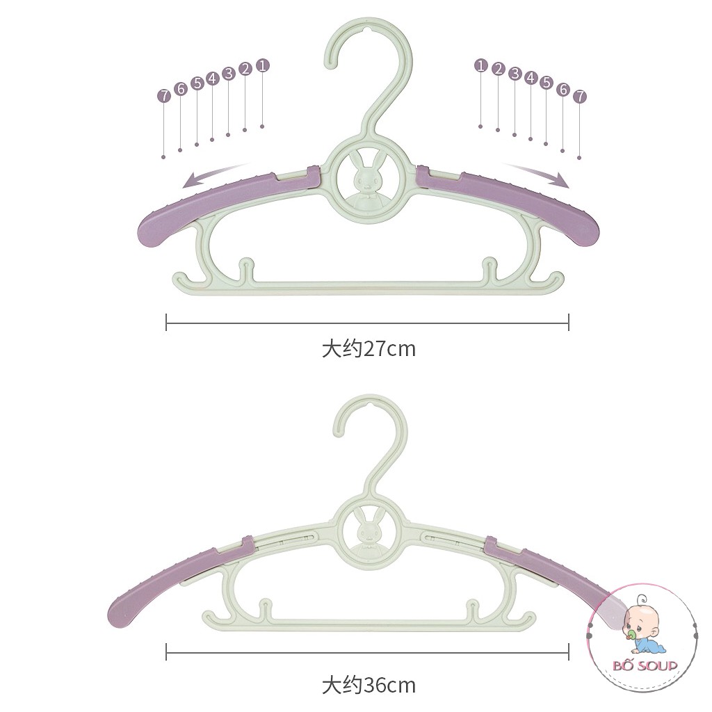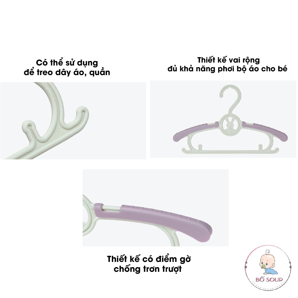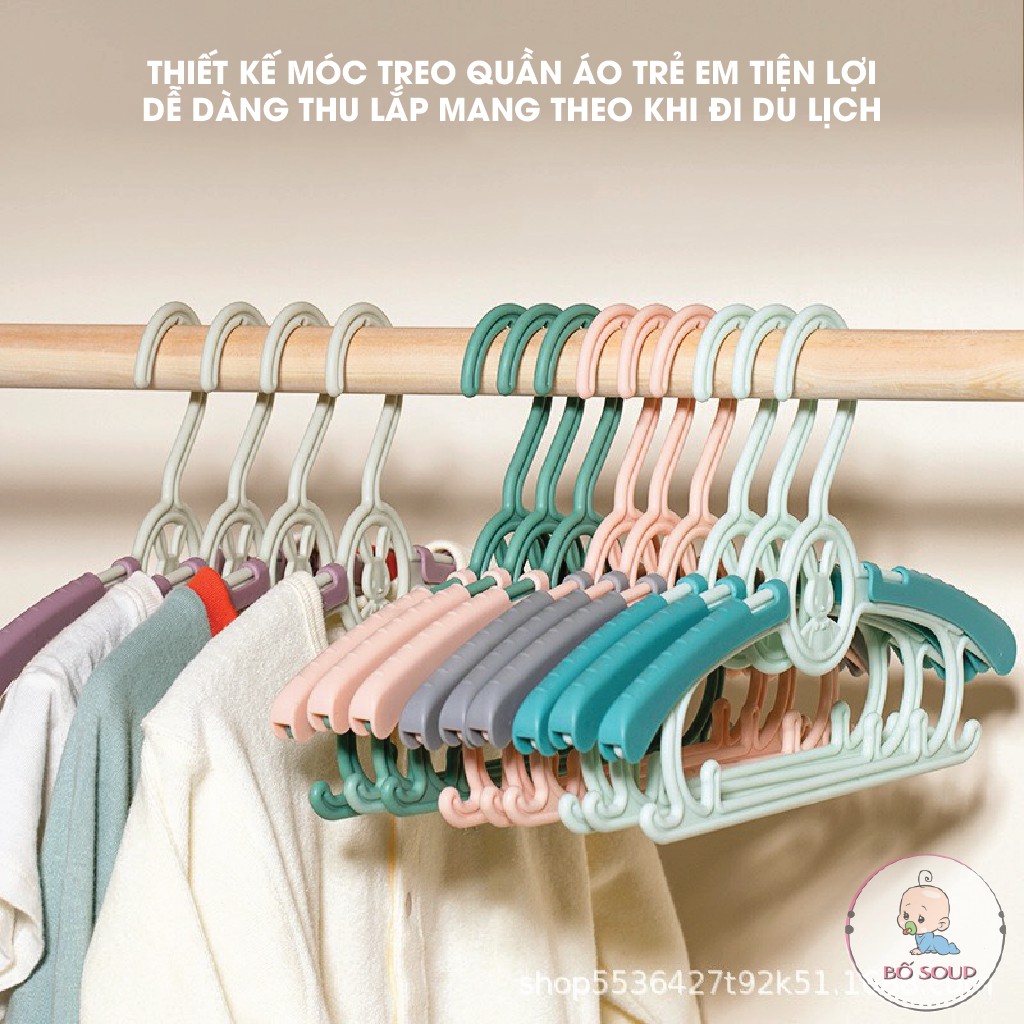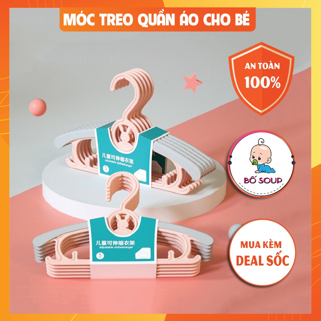 Set 5 móc treo quần áo trẻ em, móc đồ em bé điều chỉnh được độ dài ngắn Shop Bố Soup