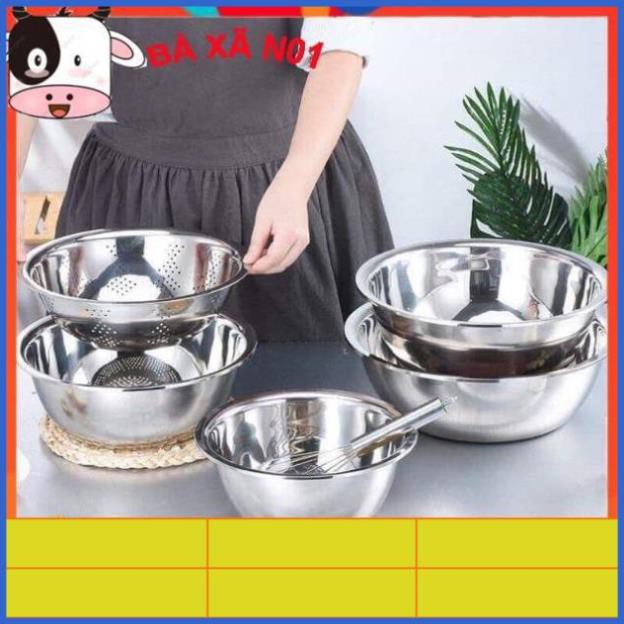 Nhà cửa & Đời sống > Dụng cụ chăm sóc nhà cửa > Chậu, xô & gáo nước || Sét 5 món một rổ và 4 chậu inox tiện lợiCòn hàng