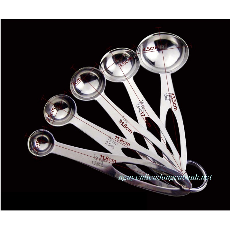 Set 5 muỗng đong chất liệu InoxCông dụng: dùng đo lường nguyên liệu làm bánh
