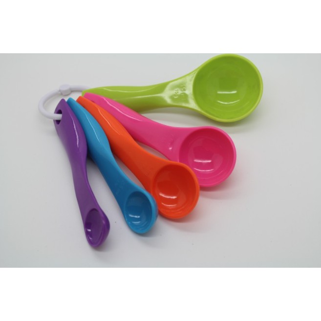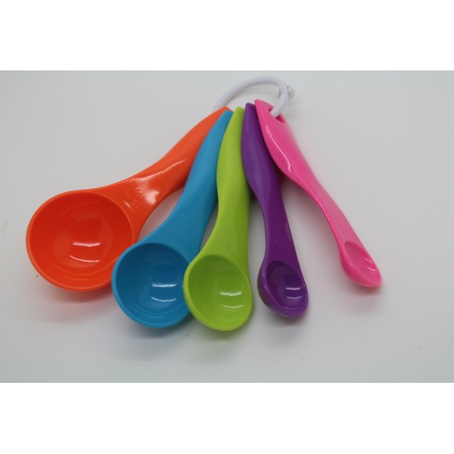 Set 5 muỗng đong gia vị màu sắc gồm 5 chiếc với tỉ lệ lần lượt là: 1ml, 2.5ml, 5ml, 7,5ml, 15mlTrọng lượng khoảng: 60g
