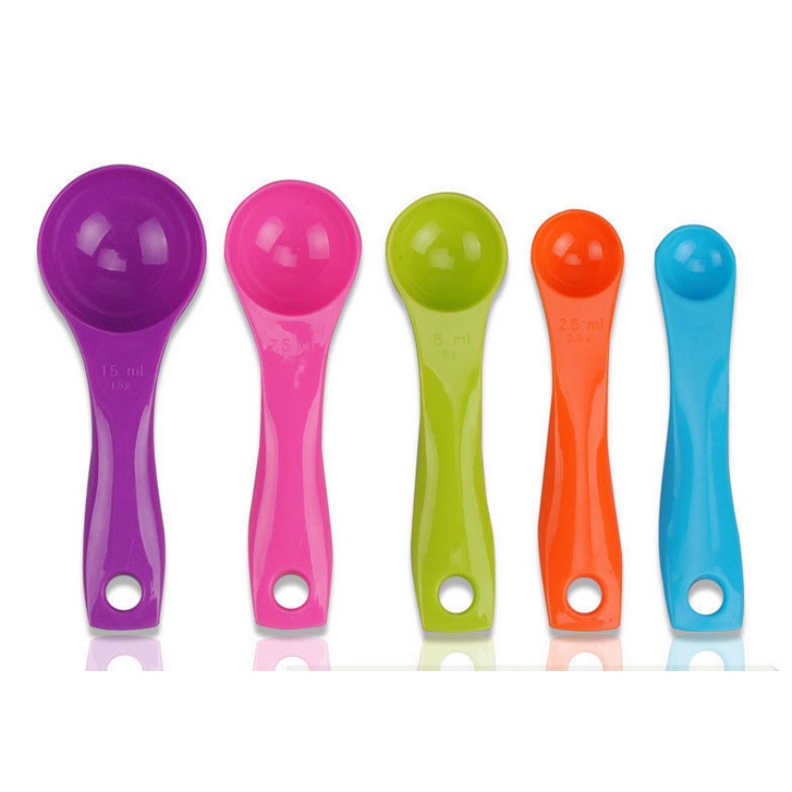 set 5 muỗng nhỏ đo lường và trang trí nhà bếpđo dc các dung tích 1 ml ; 2,5 ml ; 5ml; 7.5 ml; 15 ml