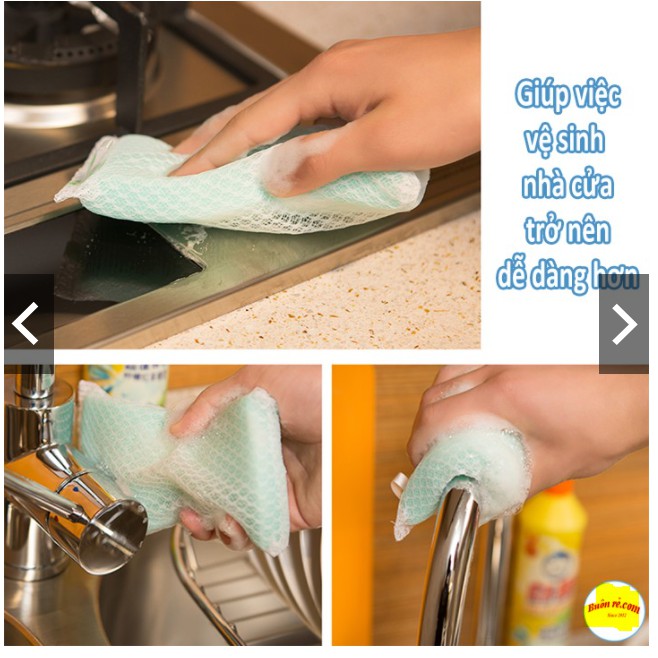 - Mút Lưới Rửa Chén Bát với thiết kế với nhiều lỗ thông khí & lỗ tạo bọt, giúp tạo bọt mịn nhanh chóng, rửa chén bát sạch hơn, tiết kiệm xà bông.