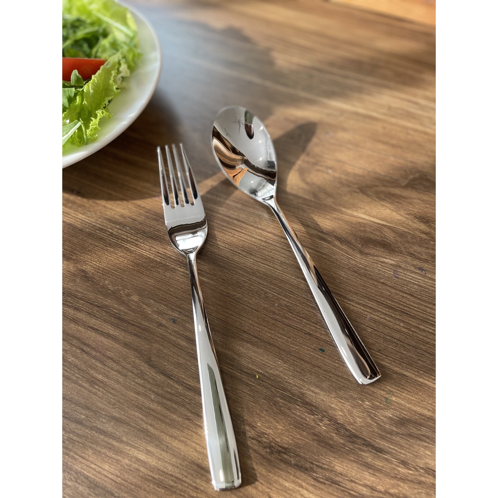 - Dĩa dày dặn, cầm nặng tay, màu inox sáng bóng