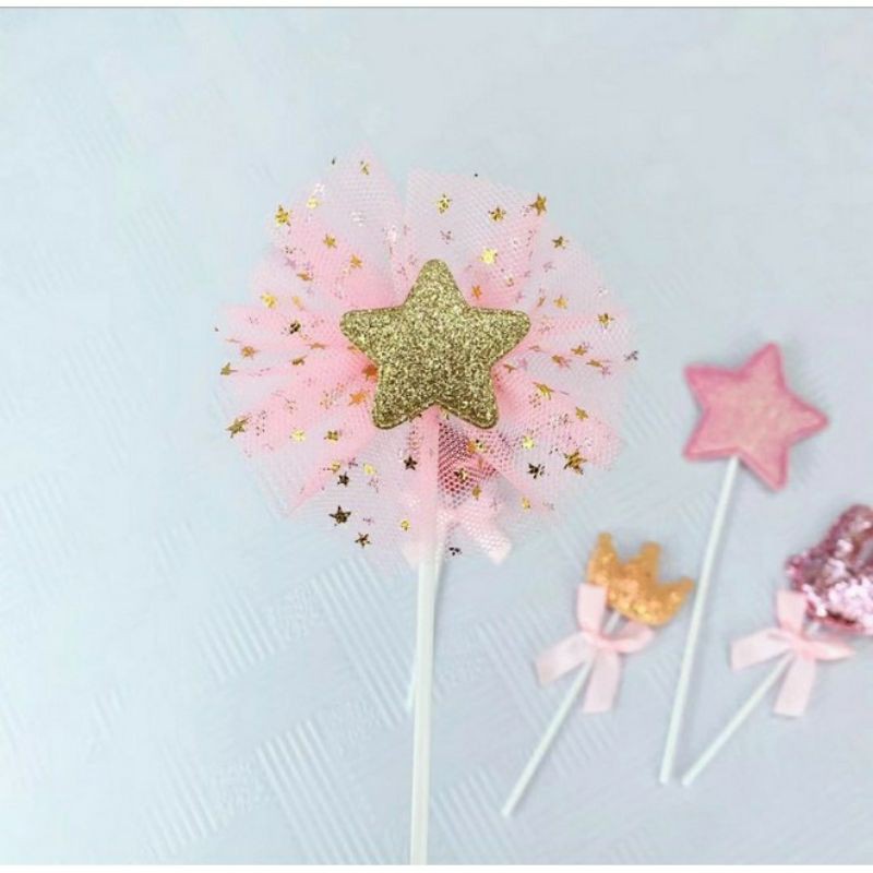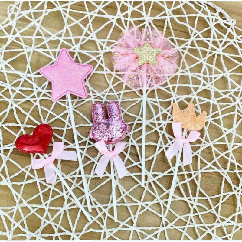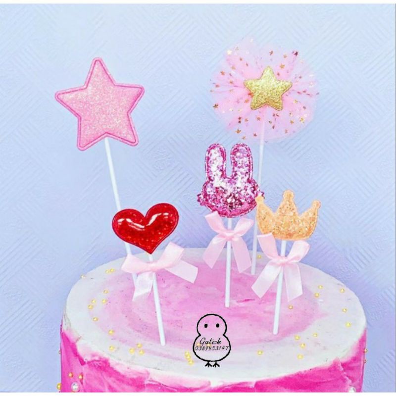 Set 5 que cắm tai thỏ vương miện tim sao trang trí bánh kem, topper cake