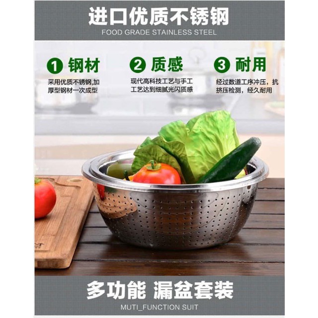 Nhà cửa & Đời sống > Dụng cụ chăm sóc nhà cửa > Chậu, xô & gáo nước || Sét 5 rổ thau inox có hộp BEOH1Còn hàng