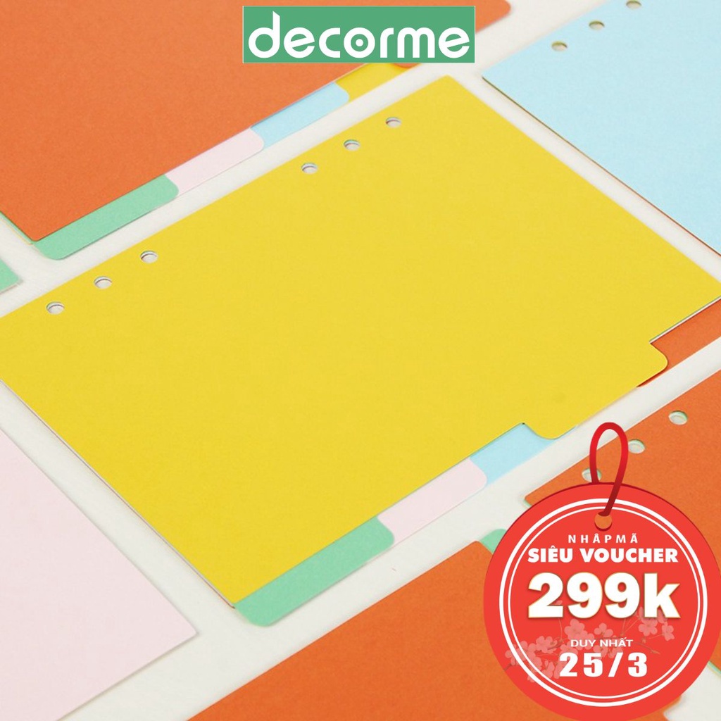 Set 5 tab phân trang giấy trơn màu 6 lỗ