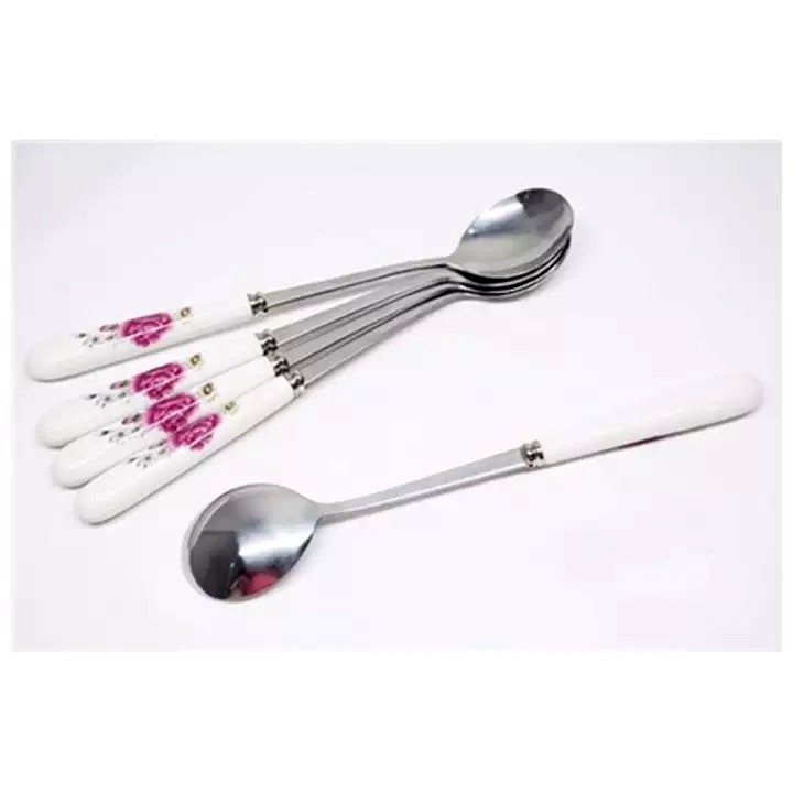 ✔Set gồm 5 thìa hoặc 5 dĩa, với thiết kế sang trọng, bắt mắt.✔Chất liệu: phần inox sáng bóng, phần sứ in hoa hồng thanh thoát, nhẹ nhàng.