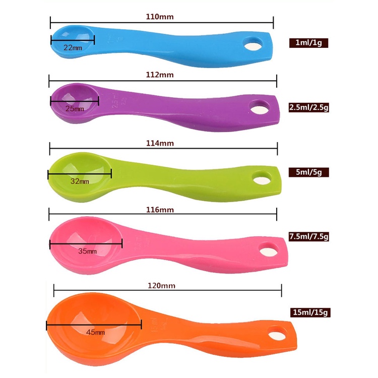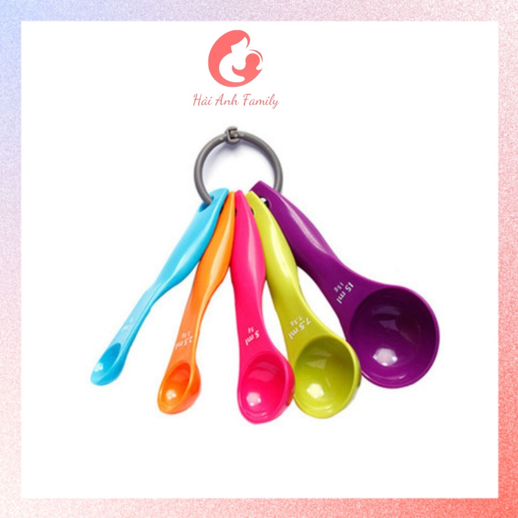 - Bộ 05 muỗng đo lường bằng nhựa cao cấp thuận tiện cho bạn đo lường chính xác nguyên liệu để chế biến thức ăn.