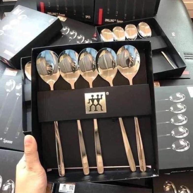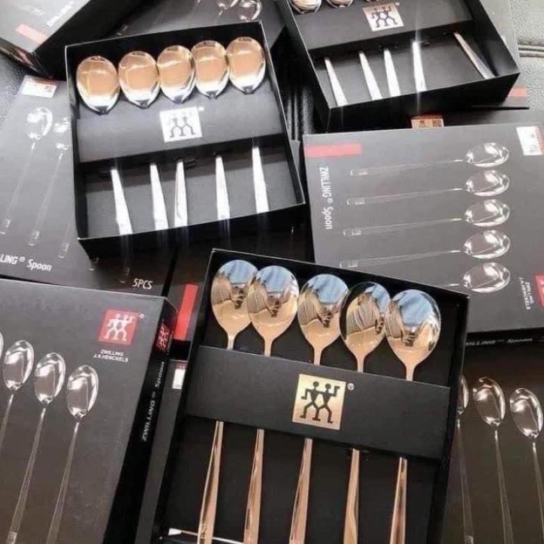 Sét 5 Thìa Inox Cao Cấp, Thìa Inox Cán Dài Xịn Xò - Thìa King hộp đen