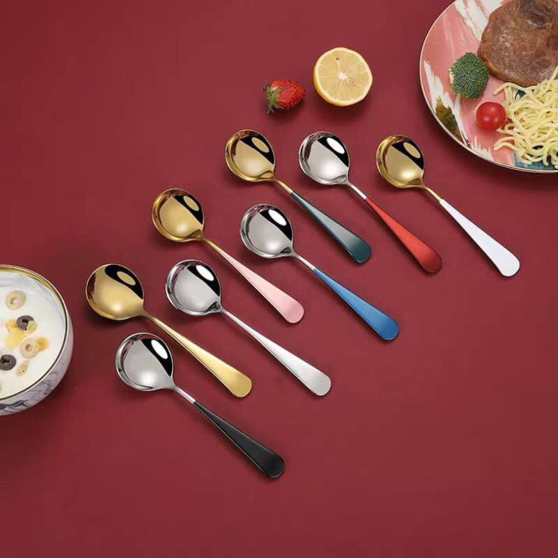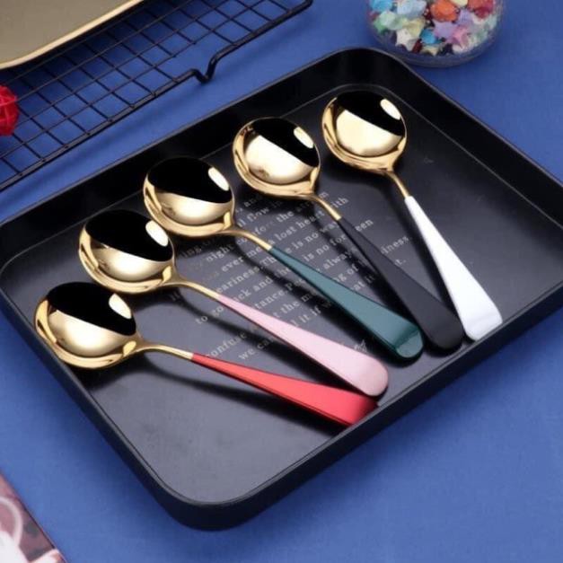 Nhà cửa & Đời sống > Bộ đồ bàn ăn > Bộ dao kéo || Set 5 thìa inox mạ vàng sang chảnh Combo 5 muỗng hoàng gia cán phủ sơn cao cấpCòn hàng