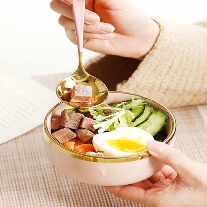Set 5 thìa inox mạ vàng sang chảnh Combo 5 muỗng hoàng gia cán phủ sơn cao cấpThích nhất là cuống dài vừa phải , độ sâu thích hợp và yêu nhất là vòng thìa dễ ăn nên phù hợp cho cả người lớn và trẻ em