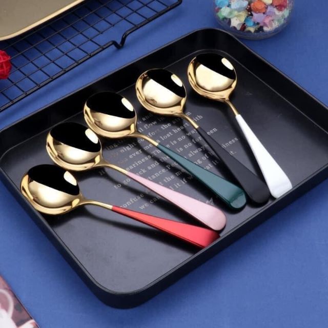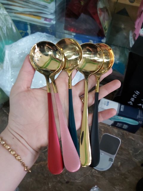 Set 5 thìa ăn cơm 5 màu siêu sang chảnh ạ. Chất inox xịn nặng tay mạ titan . Sáng loáng ăn cơm thì siêu xịn sò luôn nha... nhanh tay sắm về thôi khách ơiGiá PAC