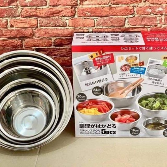 💯💯 Hàng bên em là nhập chính hãng từ Nhật, có kiểm định chất lượng đàng hoàng. Trong bếp mà có bộ 5 tô inox của Nhật này thì tiện hết nấc chị em ạ, dùng làm bánh, làm tô trộn, làm bát tô, dùng khi nhà có nhiều khách...