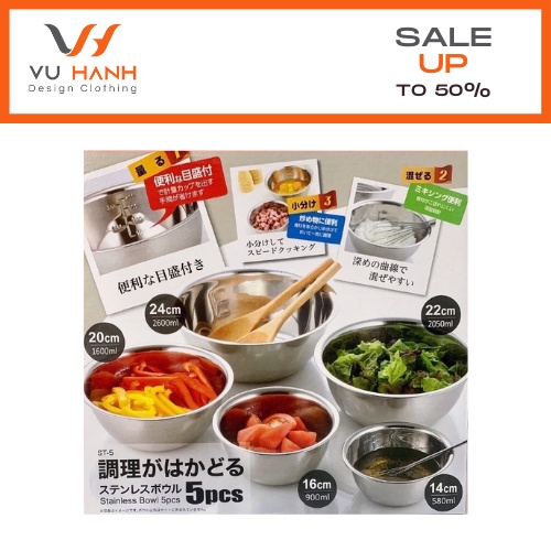 Set 5 tô inox cao cấp Nhật Bản:Chất liệu: inox cao cấp, an toàn.