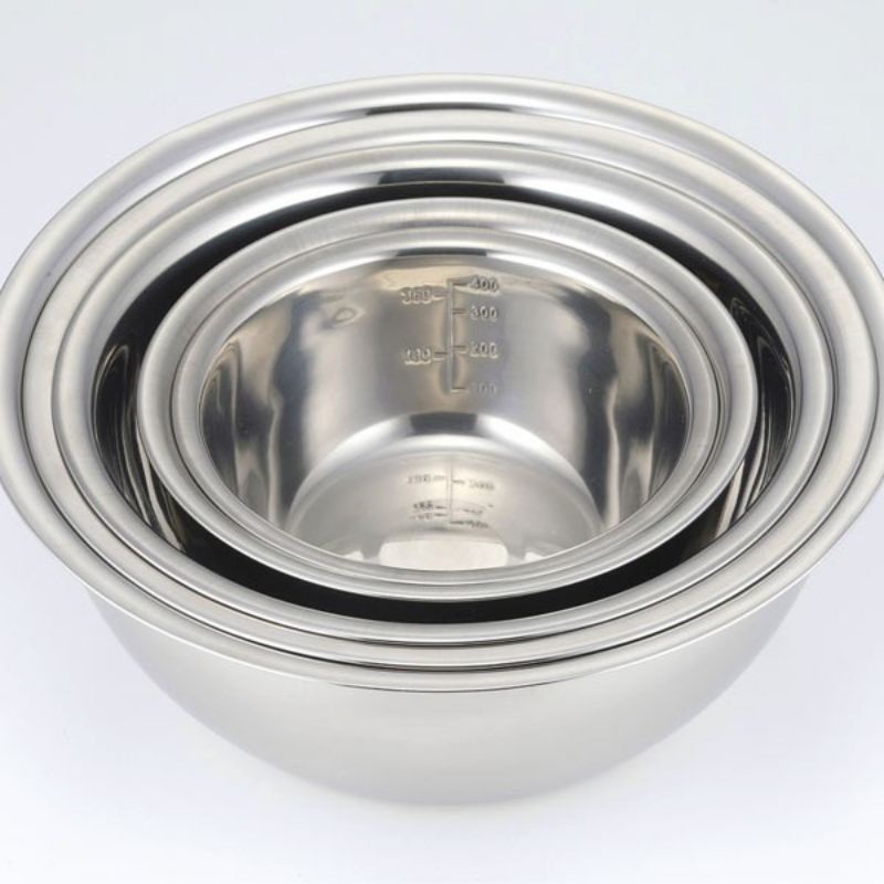 Chất liệu: inox cao cấp - Kích thước: Gồm 5 tô với 5 kích cỡ khác nhau: 1 tô 14cm (dung tích: 580mk), 1 tô 16cm (dung tích: 900ml), 1 tô 20cm (dung tích: 1600ml), 1 tô 22 cm (dung tích: 2050ml), 1 tô 24cm (dung tích: 2600ml) - Hàng nhập từ Nhật. Sản xuất tại Trung QuốcGiá CNT