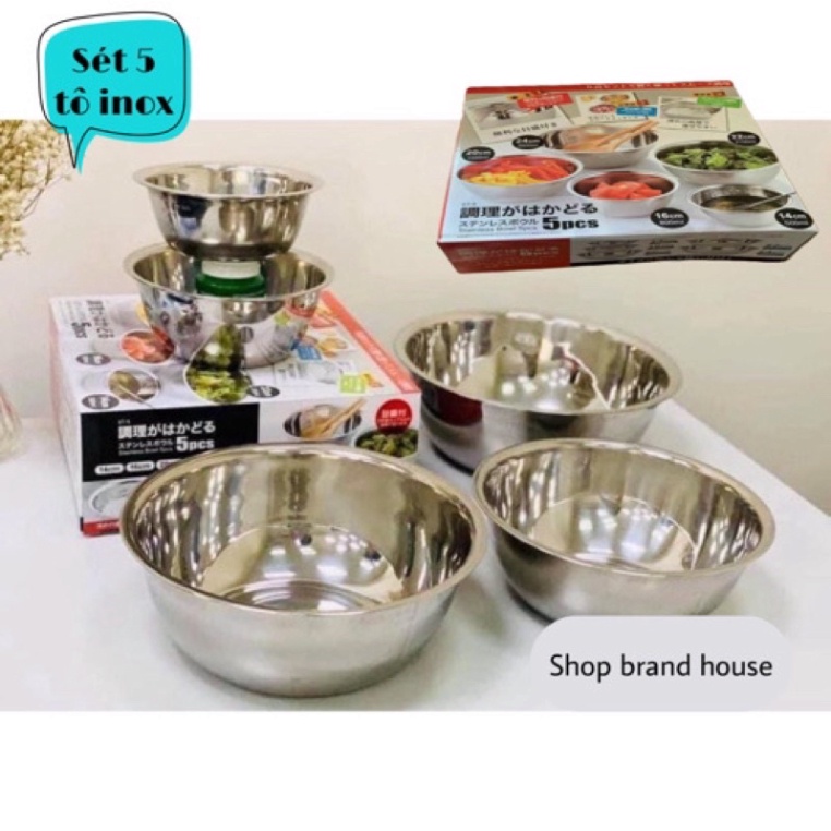 Nhà cửa & Đời sống > Bộ đồ bàn ăn > Tô || Set 5 Tô Inox Đựng Thức Ăn Nhật Bản Đủ Size Bền Đẹp, Đa Năng, Tiện Dụng, Thiết Kế Gấp Gọn GàngCòn hàng