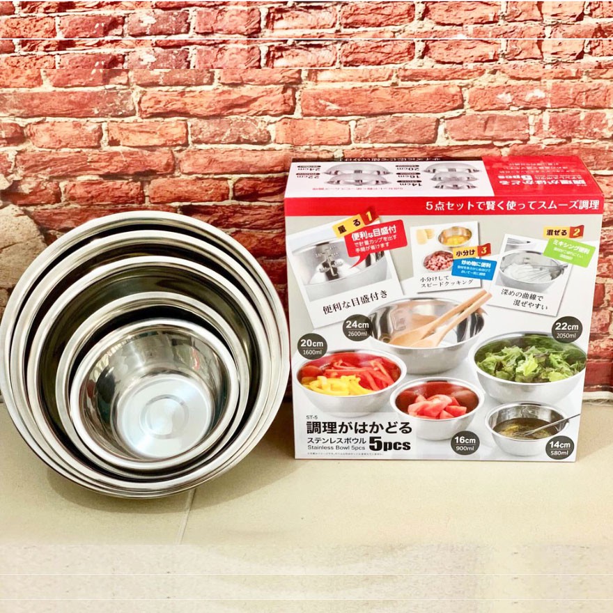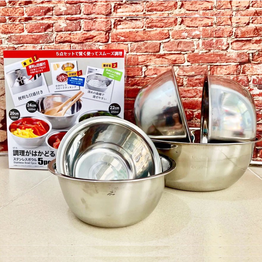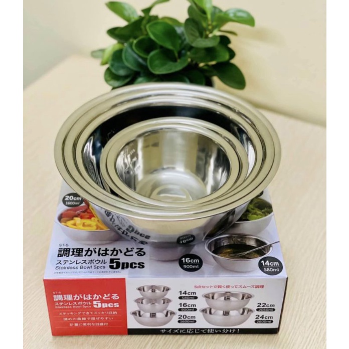 Nhà cửa & Đời sống > Bộ đồ bàn ăn > Tô || Set 5 tô trộn Inox hàng Nhật DT-5Còn hàng