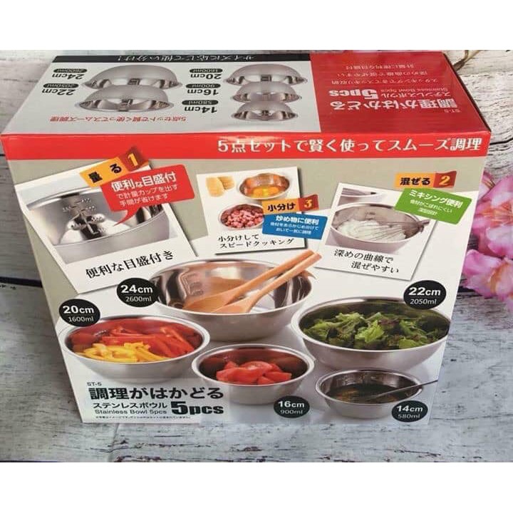Set 5 tô trộn Inox hàng Nhật DT-5