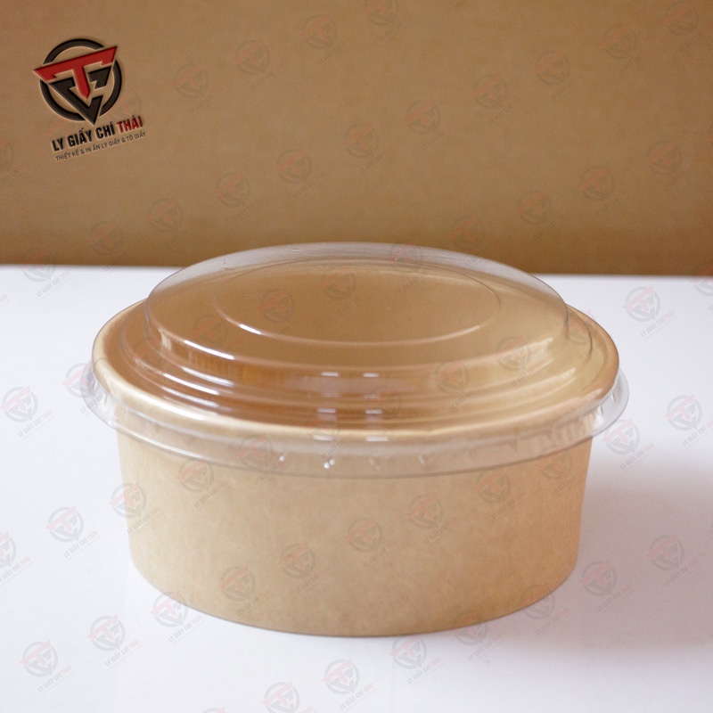 SET 50 cái Tô giấy Kraft 750ml nắp PET - Siêu dày chất lượng tốt, dùng đựng bánh, chế biến thức ăn nóng.