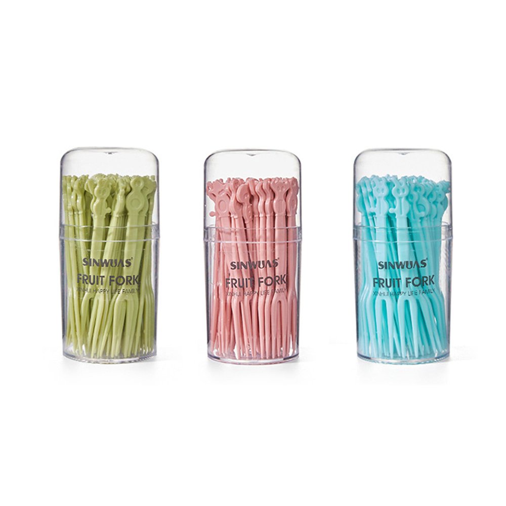 Set 50 chiếc dĩa cắm thức ăn hoa quả dễ thương dĩa nhựa xiên hoa quả chất liệu nhựa PS an toàn- Hộp 50 nĩa ghim trái cây mũi nhọn, giúp dễ dàng ghim trái.