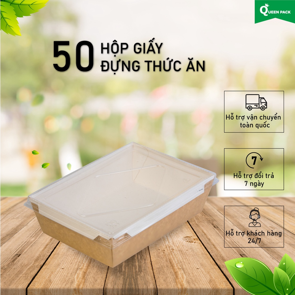 SET 50 chiếc Hộp giấy đựng thức ăn kèm NẮP TRONG, đựng thực phẩm, bún, đồ xiên, cơm tiện dụng