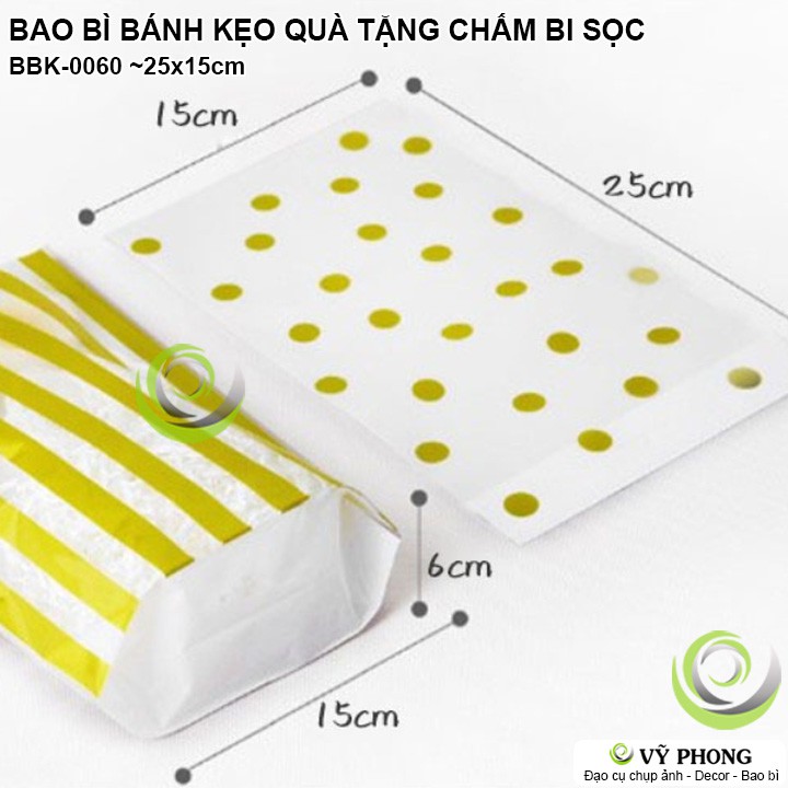 Tên sản phẩm : BAO BÌ TÚI NHỰA ĐỰNG BÁNH KẸO QUÀ TẶNG CÁC DỊP LỄ TẾT NOEL GIÁNG SINH IN CHẤM BI SỌC VÀNG BẮC ÂUMã sản phẩm : BBK-0060