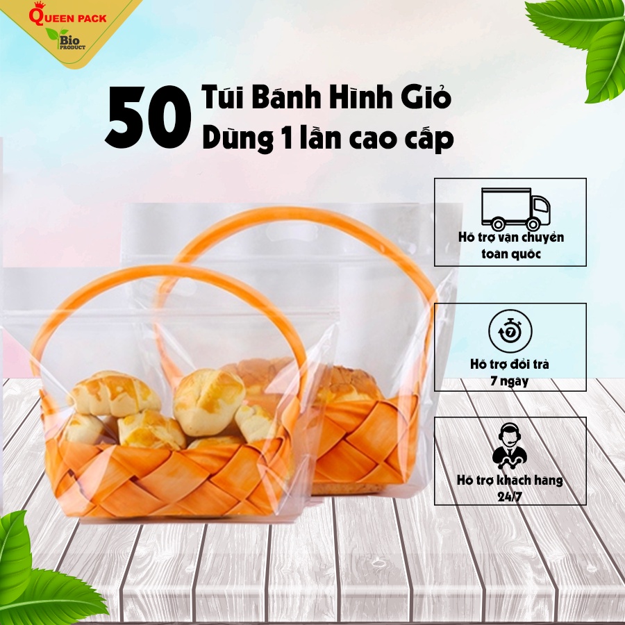 Set 50 Túi Zip đựng bánh Hình Giỏ mây/Giỏ Xách Cao Cấp