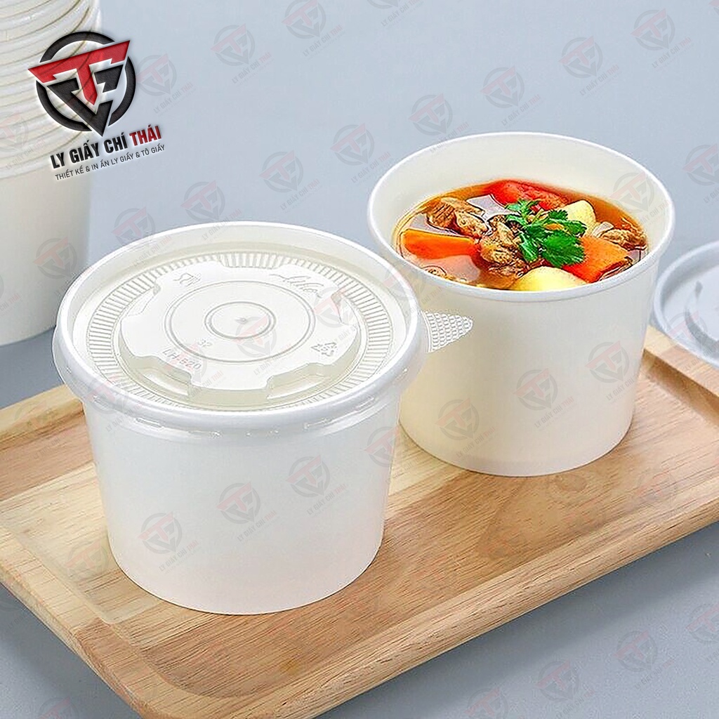 - Tô (bát) giấy dùng một lần phù hợp đựng đồ ăn như cháo, soup, chè, lẩu… take away rất tiện dụng và an toàn.