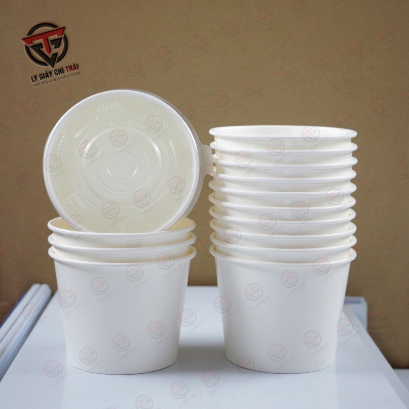 Set 50c Tô Giấy, Cốc Giấy 20oz 600ml KÈM NẮP PP DÀY, chuyên đựng đồ ăn, cháo, soup, canh, hủ tiếu, bún v.v..
