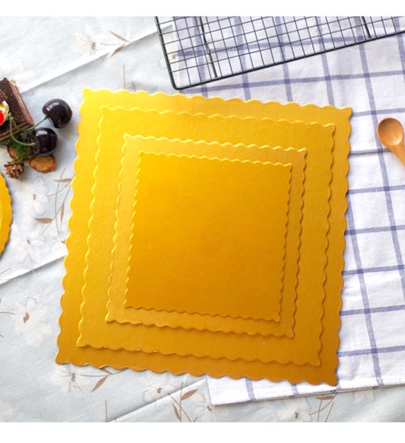 Làm từ giấy bìa cứng, dùng để lót bánh gato.Chất liệu cứng cáp, chống thấm nước, dày dặn, có thể chịu được trọng lượng của bánh 2-3 tầng