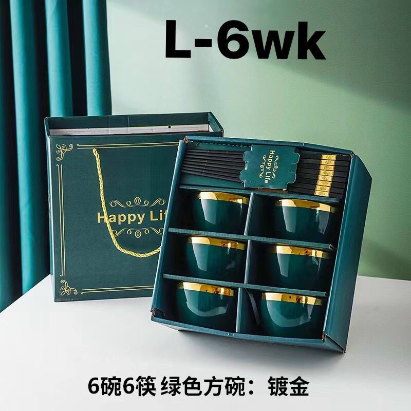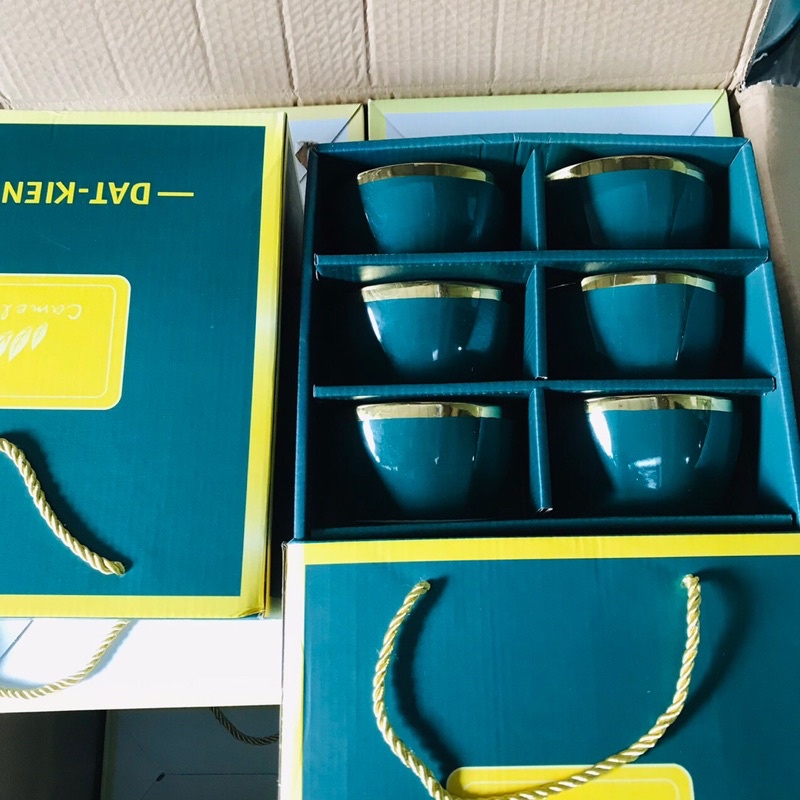 Nhà cửa & Đời sống > Bộ đồ bàn ăn > Tô || Set 6 bát cơm viền vàng kèm đũa sang trọng (trắng- xanh cổ vịt)Còn hàng
