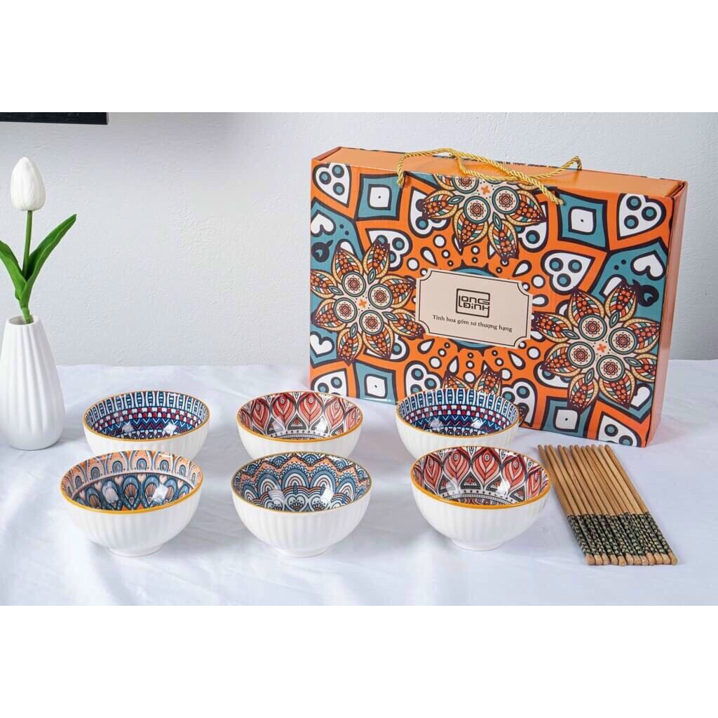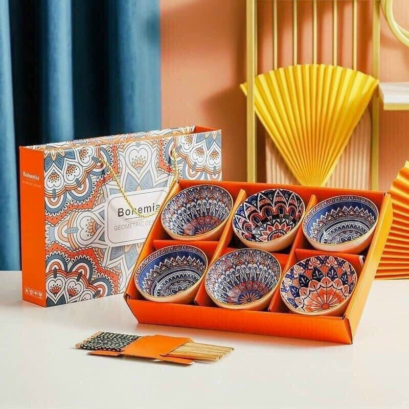 Nhà cửa & Đời sống > Bộ đồ bàn ăn > Tô || Set 6 bát con ăn cơm thổ cẩm vintage + 6 đôi đũaCòn hàng