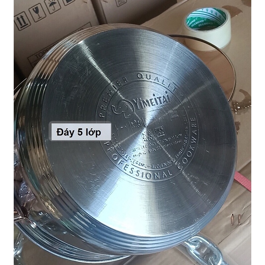 Set 6 Bộ nồi Đức 5 đáy Yimeitai gồm 6 món nắp hợp kim vàng dùng cho mọi loại bếp điện, bếp từ, bếp ga - GDPT