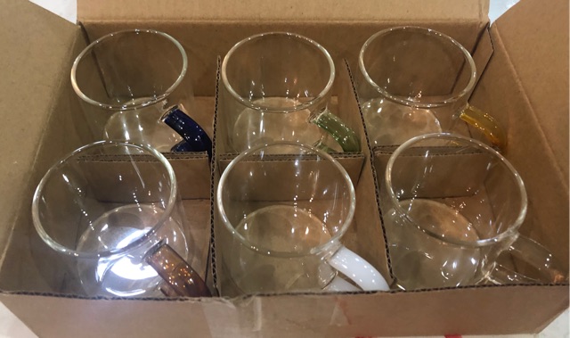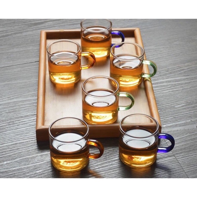 Set 6 chén thuỷ tinh quai màu 100ml