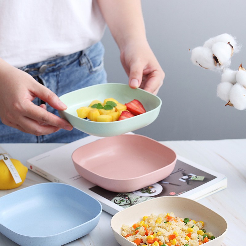 Nhà cửa & Đời sống > Bộ đồ bàn ăn > Dĩa || Set 6 chiếc dĩa nhựa lúa mạch vuông, sâu lòng, đựng trái cây bánh kẹo nhiều màu xinh xắnCòn hàng