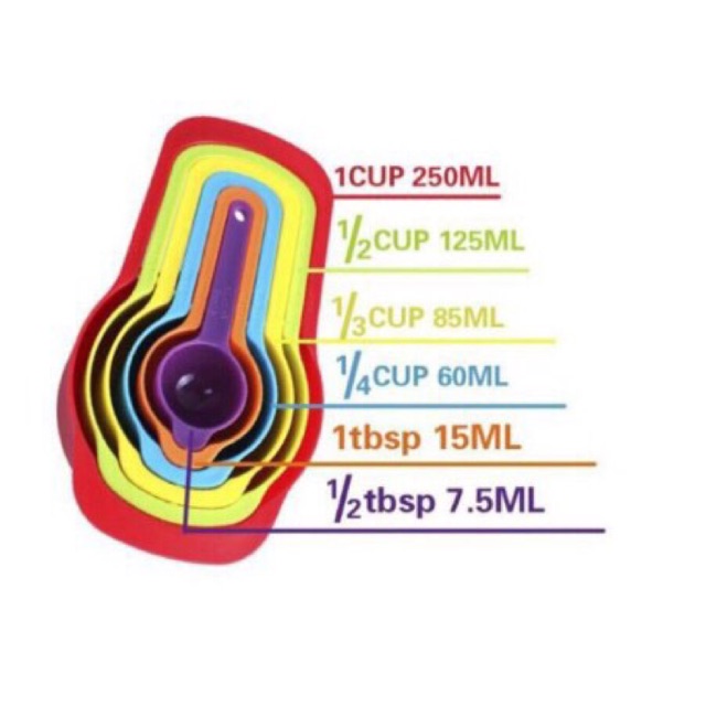 Nhà cửa & Đời sống > Dụng cụ nhà bếp > Dụng cụ đo lường || Bộ set 6 cup đong định lượng 250mlCòn hàng