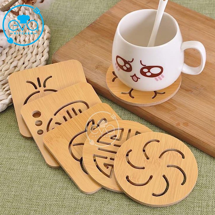 Nhà cửa & Đời sống > Bộ đồ bàn ăn > Khay, tấm lót bàn ăn || Set 6 Đế Lót Ly Cốc Bằng Gỗ Cách Nhiệt Chống Trơn Trượt Hoạ Tiết Sang TrọngCòn hàng