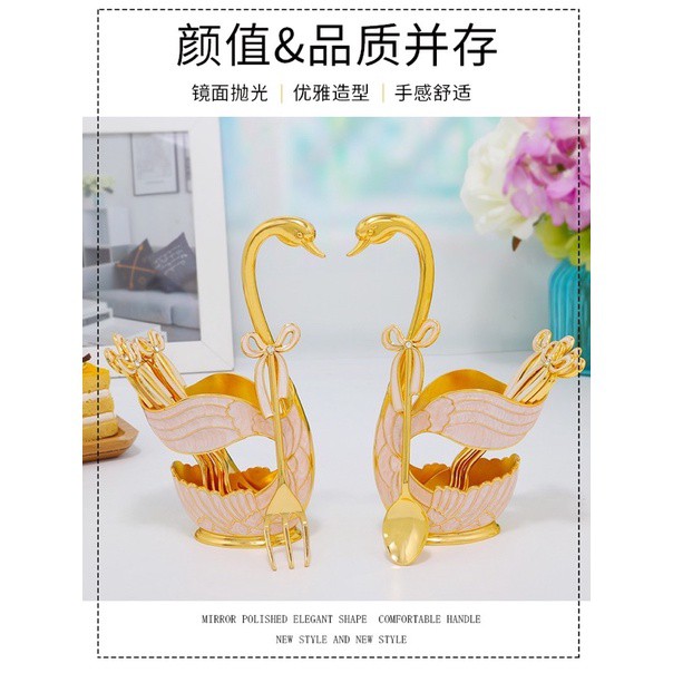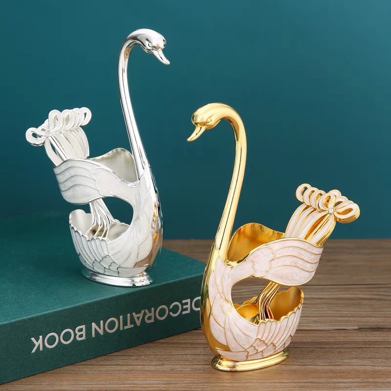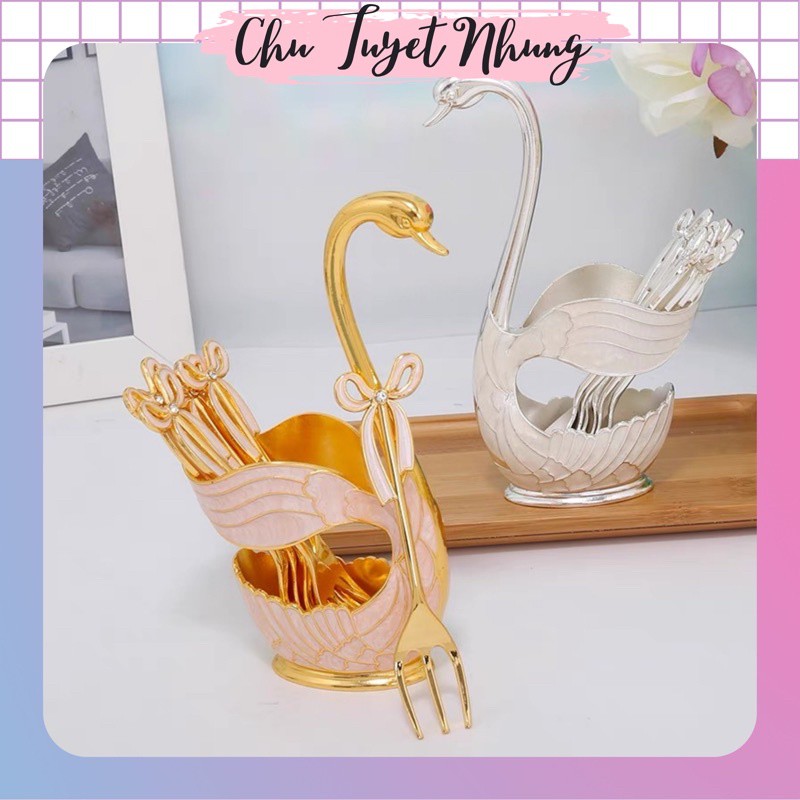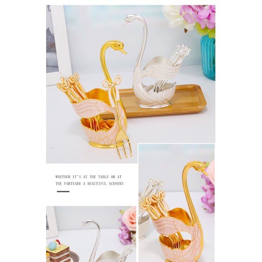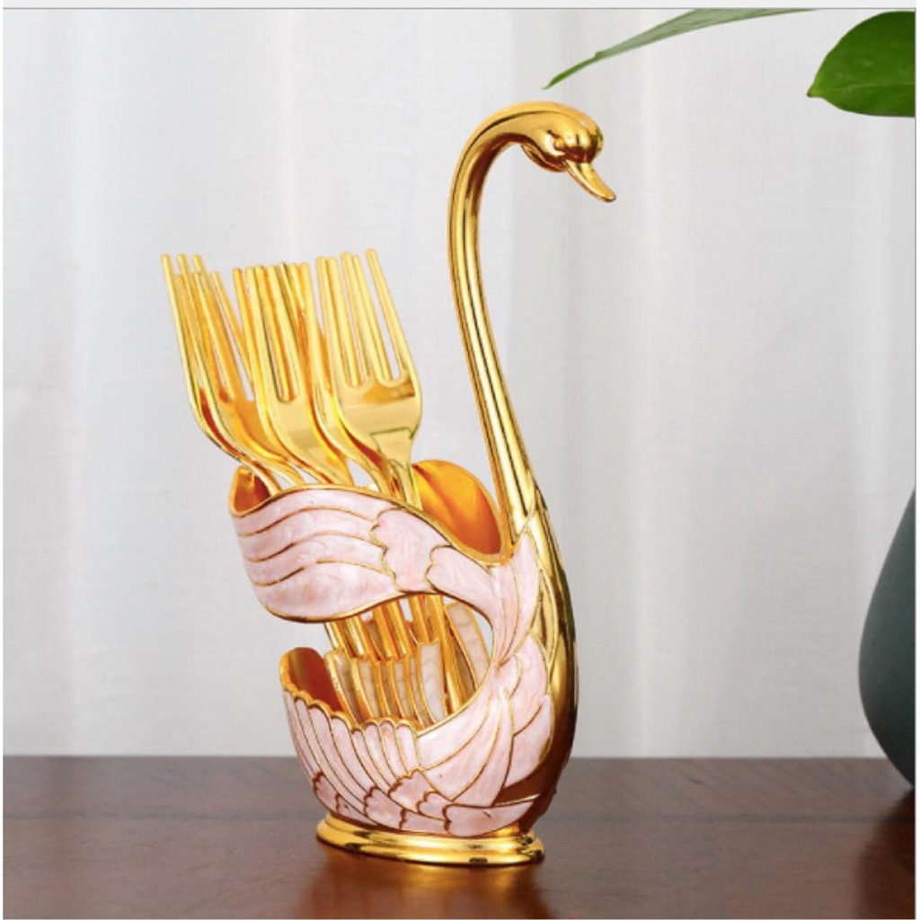 Nhà cửa & Đời sống > Bộ đồ bàn ăn > Dĩa || Sét 6 dĩa kèm ống cắm thiên nga sang chảnh, bộ đựng thìa dĩa hình thiên nga siêu sangCòn hàng