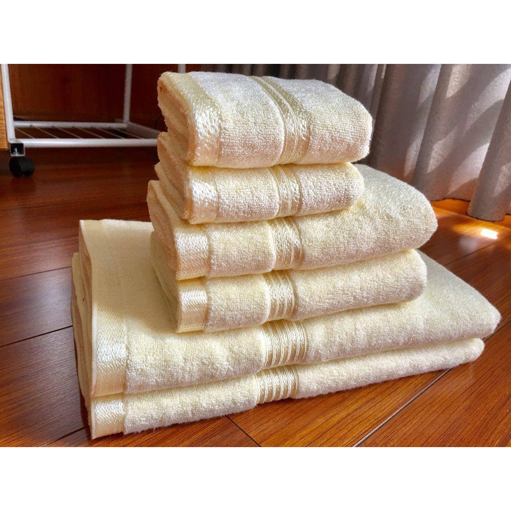 Nhà cửa & Đời sống > Đồ dùng phòng tắm > Khăn mặt, khăn tắm, áo choàng tắm > Khăn tắm || Set 6 khăn sợi modal cao cấp, 2 khăn tắm 65cm* 135cm, 2 khăn lau đầu 35 * 80cm, 2 khăn mặt 30cm * 50cm (Hàng xuất dư)Còn hàng