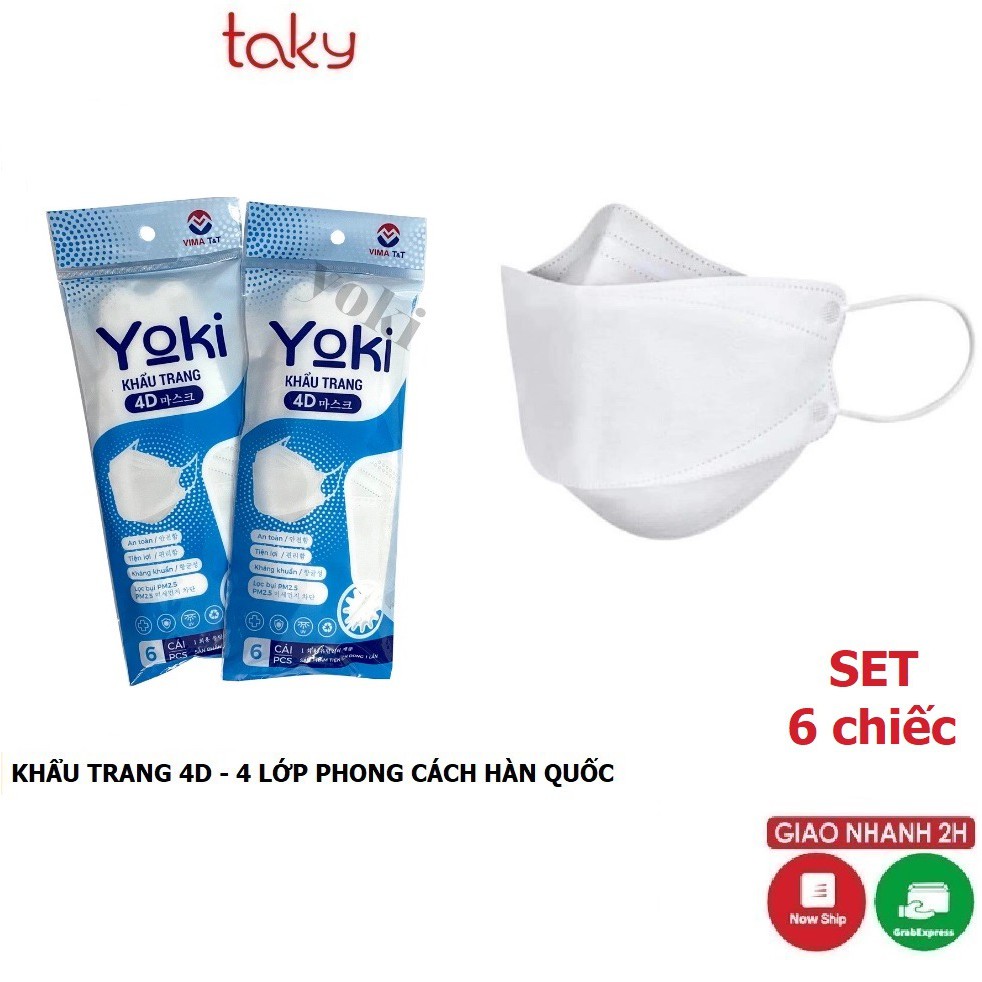6 Khẩu Trang 4D - YOKI Cao Cấp 4 Lớp, Kháng Khuẩn, Chống Bụi - Set 6 chiếc/1 Gói* Khẩu Trang Giúp Không Làm Lem Son, tiện dụng cho chị em.