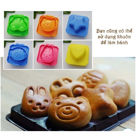 - Bao gồm 6 hình: doremon, gấu, thỏ, cá , trái tim, mèo..Tạo hình cho trứng luộc, có thể làm cơm nắm thành hình ngộ nghĩnh đáng yêu, cũng như làm BENTO cho bé rất nhanh chóng .