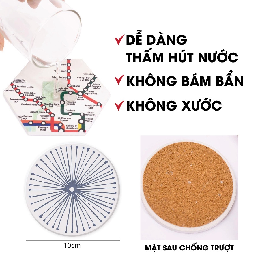 Set 6 lót cốc bằng gốm non có mặt sau ép gỗ sồi hút nước cực tốt, trang trí quán cafe, quầy bar, nhà hàng,phòng ăn 2023