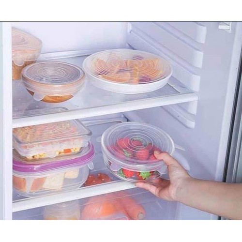 👉Màng bọc thực phẩm silicol co dãn thoải mái. 1 bộ 6 cái . dùng ko lo hỏng lại an toàn cho sức khỏe . MIẾNG BỌC SILICON BỌC THỨC ĂN SIÊU TIỆN ÍCH .📛📛📛Thui từ h tạm chia tay màng bọc thực phẩm nhé, có nắp đậy silicon cực an toàn, sạch sẽ, mà tiết kiệm tái sử dụng được nhiều lần, kín, mà ko bị lẫn các mùi thực phẩm trong tủ lạnh. Mà có nắp nên xếp đồ ăn chồng lên cũng dễ dàng hơn. Riêng nhà em cũng phải 3 -4 set để bọc bảo quản đồ ăn trong tủ lạnh rùi
