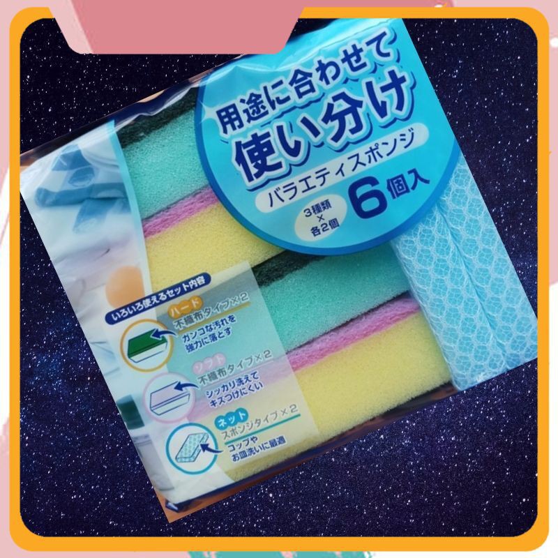 Set 6 miếng mút rửa bát 3 loại mút, sợi tổng hợpHàng nhập từ Nhật Bản- Chất liệu: mút, sợi tổng hợp.