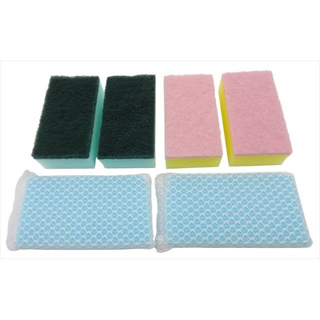 "- Chất liệu: mút, sợi tổng hợp.- Quy cách: Bộ mút rửa chén gồm 3 loại: Loại cứng (màu xanh lá - 2 cái) thích hợp dùng chùi rửa các vết bẩn cứng đầu. Loại mút mềm (màu hồng - 2 cái) thích hợp chùi rửa chén bát. Loại mút bọc lưới mềm (xanh da trời - 2 cái), thích hợp dùng chùi rửa ly tách gốm sứ, thủy tinh. Mút thích hợp cho nhiều mục đích sử dụng, tiện dụng cho mọi nhà bếp.