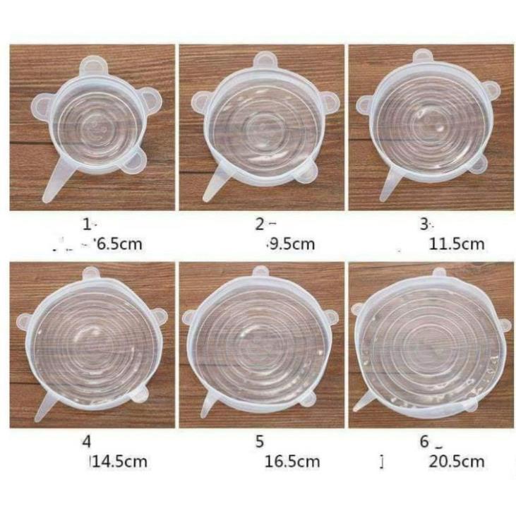 Giới thiệu Set 6 Miếng Nắp Đậy Silicon Co Giãn - Bọc Chén, Bát, Thực Phẩm Cần Bảo Quản Giá Gốc