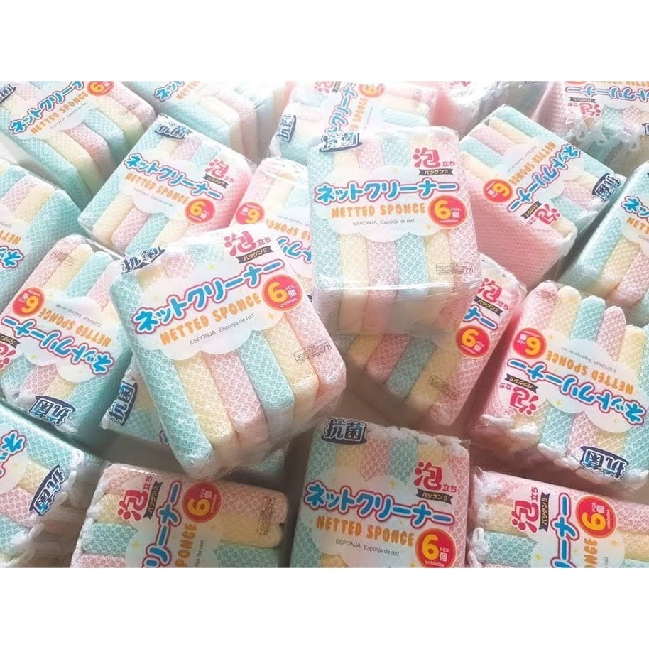 Nhà cửa & Đời sống > Dụng cụ chăm sóc nhà cửa > Miếng bọt biển, miếng chà vệ sinh || Sét 6 Miếng xốp Rửa Bát Bọc Lưới Tạo Bọt Nhật BảnCòn hàng